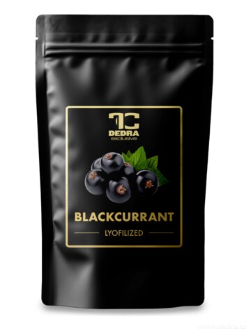 Skład: czarna porzeczka suszona mrozem 100%. Bez alergenów. Nie wystawiać na bezpośrednie działanie promieni słonecznych. Przechowywać w suchym miejscu, w temperaturze pokojowej. Uniemożliwić dostęp powietrza za pomocą zamka strunowego.