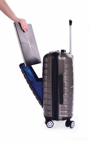 PILOT FC METROPOLAIR Wielofunkcyjna walizka podróżna, zamek TSA . Główna część walizki z gumowymi paskami do mocowania rzeczy i przedzielającą tekstylną membraną na suwak z siatkową kieszonką. Materiał błyszczący poliwęglan ABS. Wymiary: szer. 35 x dł. 20 x wys. 55 cm, waga ok. 3,1 kg.