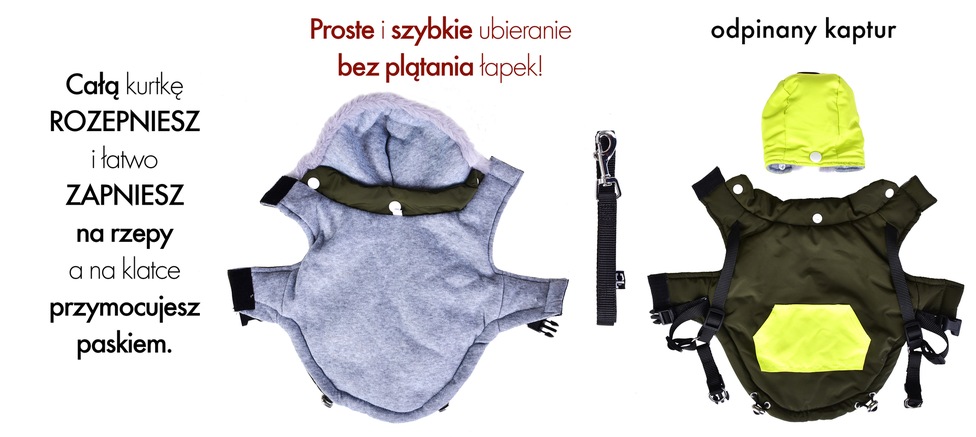 Łatwe i szybkie ubieranie bez plątania łapek! W zestawie są szelki i smycz, dzięki czemu nie potrzebujesz obroży = wygoda dla psa!