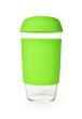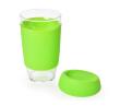 KELIMERO® szklany kubek ze zdejmowanym silikonowym paskiem i pokrywką, grubościenne szkło.