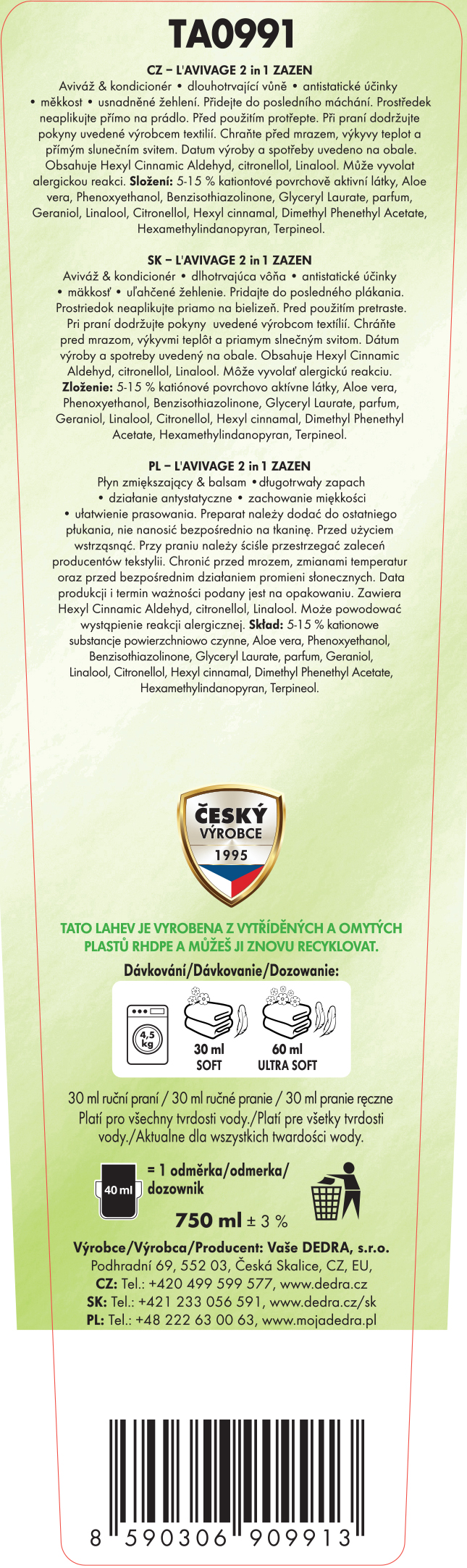 ZAZEN L'AVIVAGE ZAZEN | Płyn zmiękczający | 750 ml