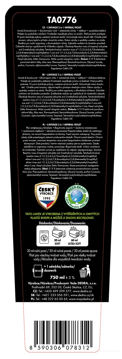 Výrobce / dovozce: Vaše Dedra s. r. o., Podhradní 69, Česká Skalice, Česká republika
